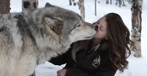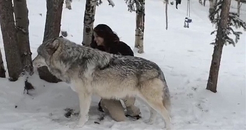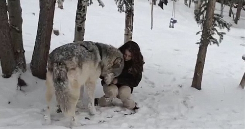 A video released by the Colorado Wolf and Wildlife Center shows the girl and wolf happily interacting in the snow. (Photo source:cri.cn)