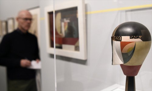Dada Head (R) by artist Sophie Taeuber (1889-1943) is on display at the exhibition Dadaglobe Reconstructed at the Kunsthaus museum in Zurich on February 4. Photo: IC