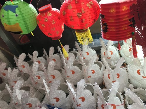 Rabbit lanterns displayed at the Temple of City God for the Lantern Festival