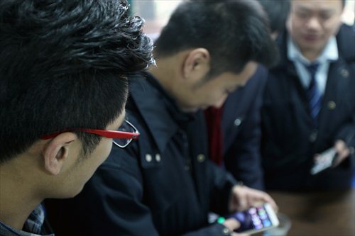 During their breaks some drivers play on their mobile phones. Photo: Yang Hui/GT