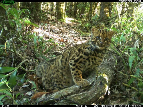 A marbled cat (Pardofelis Marmorata) is seen in Gaoligong Mountain National Nature Reserve, southwest China's Yunnan Province, in this photo taken with an infrared camera on Dec. 16, 2015. Since a marbled cat was captured in the wildness for the first time in Yunnan on Nov. 11, 2014, more infrared cameras were placed in the reserve and clear images of marbled cat were captured in December of 2015. (Xinhua)