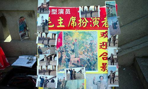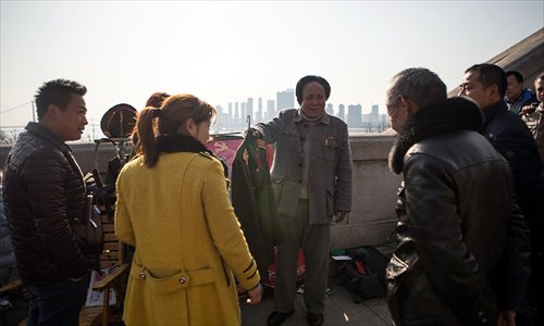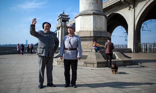 Mao Zedong impersonator Xia Yuhua poses with a tourist wearing a costume in Wuhan, Hubei Province. Photo: IC