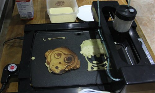 A locally made 3D printer produces a pancake in the shape of monkey's face in Wuhan, capital of Central China's Hubei Province. Photo: CFP