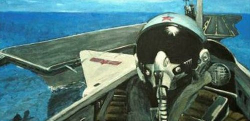 A drawing by an anonymous netizen shows pilot Wang Wei in his J-8 fighter jet, with the Liaoning aircraft carrier in the background
