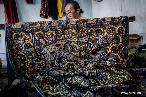 Workers do batik at Maranatha batik house at Lasem, Center Java province, Indonesia, April 6, 2016. Lasem is a small town on the north coast of Java island, located exactly in Rembang regency, Central Java Province in Indonesia. The City has a long history of Javanese-Chinese culture that was dubbed as Small China. (Xinhua/Veri Sanovri)