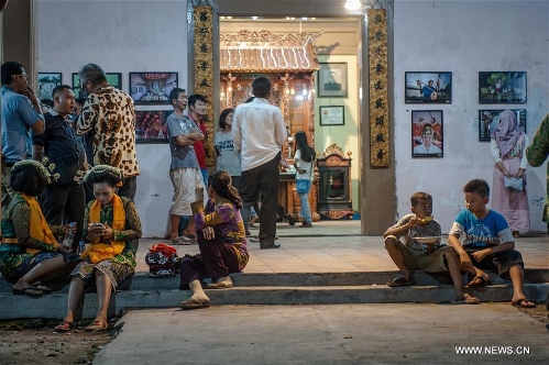 People wait in front of Lawang Ombo house in the Small China at Lasem, Center Java province, Indonesia, April 5, 2016. Lasem is a small town on the north coast of Java island, located exactly in Rembang regency, Central Java Province in Indonesia. The City has a long history of Javanese-Chinese culture that was dubbed as Small China. (Xinhua/Veri Sanovri)