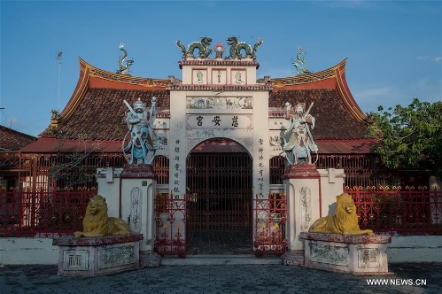 Photo taken on April 4, 2016 shows Cu An Kiong temple, one of the oldest standing temples in Chinatown area at Lasem, Center Java province, Indonesia. Lasem is a small town on the north coast of Java island, located exactly in Rembang regency, Central Java Province in Indonesia. The City has a long history of Javanese-Chinese culture that was dubbed as Small China. (Xinhua/Veri Sanovri)