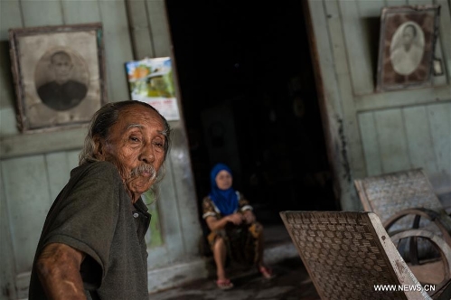 86-year-old Lo Khing Gwan (L) sits in the front room of his house in the Small China at Lasem, Center Java province, Indonesia, April 5, 2016. Lasem is a small town on the north coast of Java island, located exactly in Rembang regency, Central Java Province in Indonesia. The City has a long history of Javanese-Chinese culture that was dubbed as Small China. (Xinhua/Veri Sanovri)