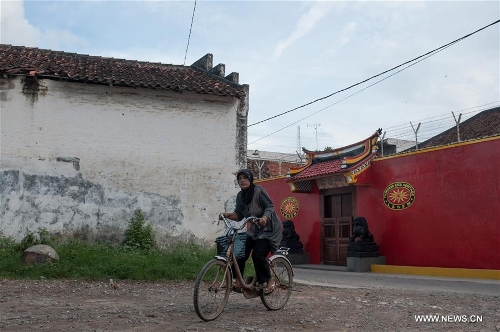 An old woman rides a bicycle to go to a traditional market in the Small China at Lasem, Center Java province, Indonesia, April 5, 2016. Lasem is a small town on the north coast of Java island, located exactly in Rembang regency, Central Java Province in Indonesia. The City has a long history of Javanese-Chinese culture that was dubbed as Small China. (Xinhua/Veri Sanovri)