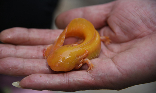 Soon, passersby gathered to see this so-called "fish with legs." Some guessed that the creature was a baby Chinese giant salamander. The species, which can reach 6 feet in length, was once common throughout central, southwestern and southern China, but today is considered critically endangered and under special state protection.