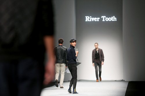 The man's handsome face has been streaked with "dirt" and he runs to the other end of the runway before turning and strolling back then disappearing through the door in the white wall. This was how the Guangzhou-based menswear brand River Tooth opened its catwalk presentation at Xintiandi during the Shanghai Fashion Week (SFW) 2016 autumn/winter collections.