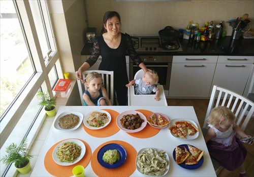 Zhang Pingping cooks lunch for her current employers, a Russian family in Beijing. The three kids are big fans of her cooking. Photo: Courtesy of Zhang Pingping