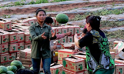 Farmers pick watermelons in northern Xieng Khouang province, Laos. Photos: Courtesy of Andrew Bartlett.