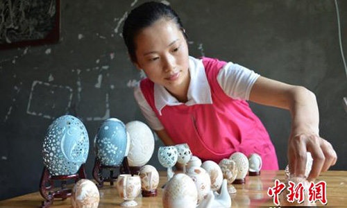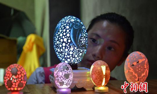 Chen Ying, a physically disabled girl from the city of Zigong in Sichuan province, has an unusual skill: carving delicate patterns on eggshells.
