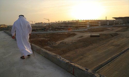 A man walks near the construction site of the Haramain High Speed Rail in Jeddah, Saudi Arabia on May 6. China Railway Construction Corp is part of a consortium that won the contract to build the first phrase of the project. Photo: CFP