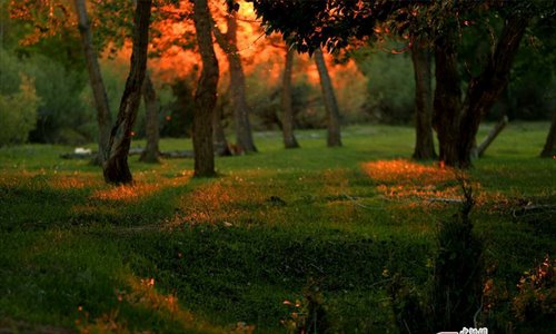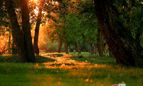 Willow catkins waft through the air at the Irtysh River, Northwest China’s Xinjiang Uygur Autonomous Region. The light from the setting sun creates a beautiful May scene. (Photo: China News Service/Chen Yang)