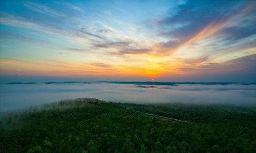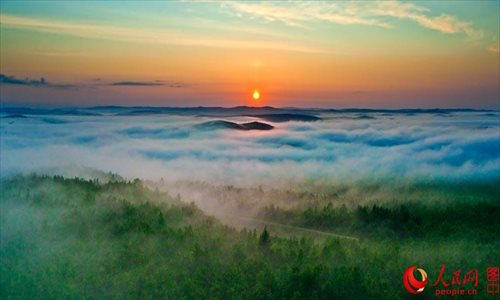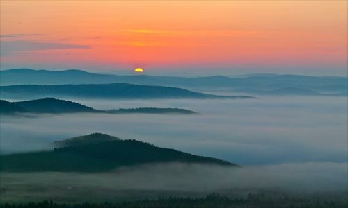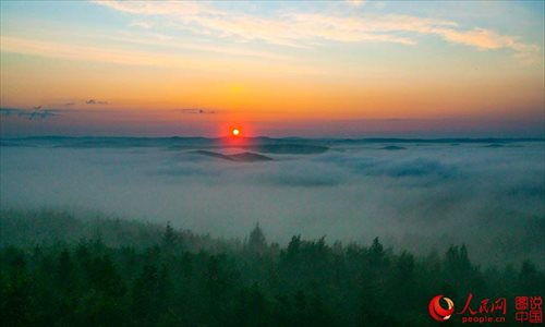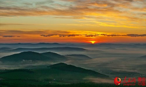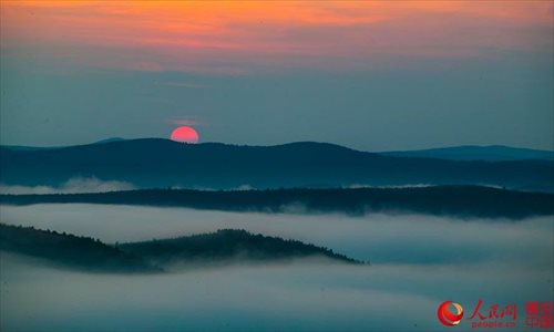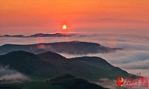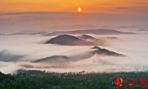 Photo taken recently shows the magnificent sunrise in Greater Khingan Mountains in northeast China. (Photo/people.cn)