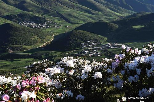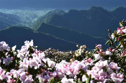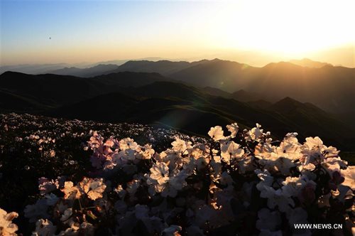 Photo taken on June 4, 2016 shows alpine azaleas on Dapingzi peak of Wumeng Mountain in Zhaoyang District of Zhaotong, southwest China's Yunnan Province. (Xinhua/Yang Zongyou)