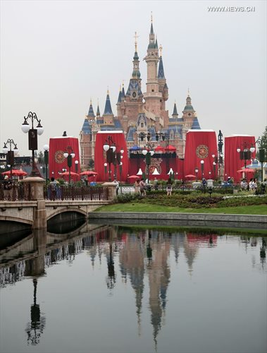 Photo taken on June 15, 2016 shows a scene of Shanghai Disneyland in Shanghai, east China. The Shanghai Disney Resort is to open on June 16. (Xinhua/Pei Xin)