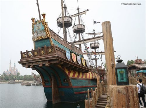 A tourists who is invited to attend the opening ceremony experiences "Treasure Cove" at Shanghai Disneyland in Shanghai, east China, June 15, 2016. The Shanghai Disney Resort is to open on June 16. (Xinhua/Pei Xin)
