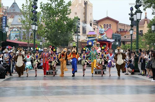 A parade is held at Shanghai Disneyland in Shanghai, east China, June 15, 2016. The Shanghai Disney Resort is to open on June 16. (Xinhua/Ding Ting)