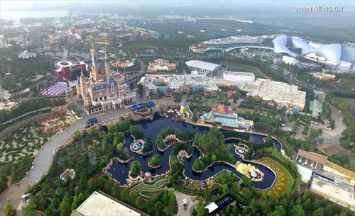 The aerial photo taken on June 15, 2016 shows a general view of Shanghai Disneyland in Shanghai, east China. The Shanghai Disney Resort is to open on June 16. (Xinhua/Ding Ting)