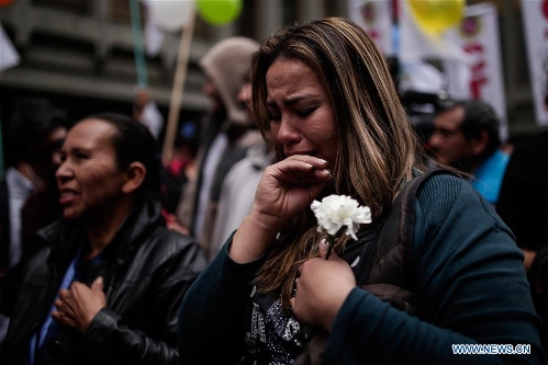 A resident reacts during the broadcast of the signing ceremony of the ceasefire agreement between the Colombian government and the FARC guerrilla group in Havana, in Bogota, capital of Colombia, on June 23, 2016. The Colombian government and FARC guerrilla group on Thursday signed a historic ceasefire deal, bringing the country's half-century civil war closer to a definitive end. (Xinhua/Jhon Paz)