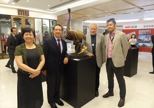 Consul General of Mexico in Shanghai Arturo Puente Ortega (second from left) poses with Mexican sculptor and ceramist José Sacal (second from right).