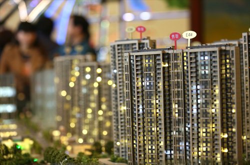 Signs read "sold out" on property models at a real estate sales office in Nanjing, capital of East China's Jiangsu Province on February 28. Photo: CFP
