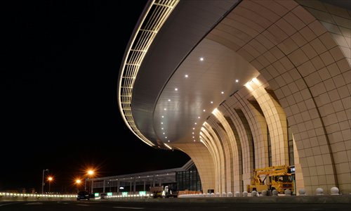 The new high-speed railway station in Urumqi is lit up on June 28. Photo: CFP