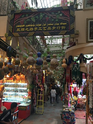 Vendors sell Xinjiang handicrafts inside the Urumqi International Grand Bazaar. Photo:Cui Meng/GT