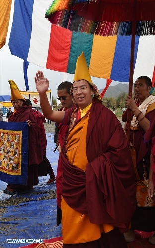 The 11th Panchen Lama Bainqen Erdini Qoigyijabu arrives for the Kalachakra ritual in Xigaze, southwest China's Tibet Autonomous Region, July 21, 2016. The first tantric Kalachakra instructions delivered by the 11th Panchen Lama Bainqen Erdini Qoigyijabu formally started, with some 40 monks beginning a closed-door observance of Yidam, the Kalachakra deity, Thursday morning. The Kalachakra (the wheel of time) ritual includes a series of tantric teachings and initiations given by gurus to help Buddhists through the cycle of life. (Xinhua/Chogo)