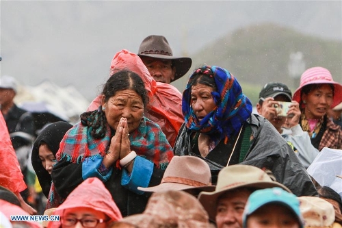 Devotees listen to the sermon delivered by the 11th Panchen Lama Bainqen Erdini Qoigyijabu during the Kalachakra ritual in Xigaze, southwest China's Tibet Autonomous Region, July 21, 2016. The first tantric Kalachakra instructions delivered by the 11th Panchen Lama Bainqen Erdini Qoigyijabu formally started, with some 40 monks beginning a closed-door observance of Yidam, the Kalachakra deity, Thursday morning. The Kalachakra (the wheel of time) ritual includes a series of tantric teachings and initiations given by gurus to help Buddhists through the cycle of life. (Xinhua/Zheng Huansong)