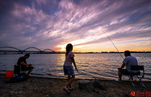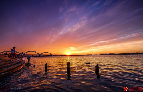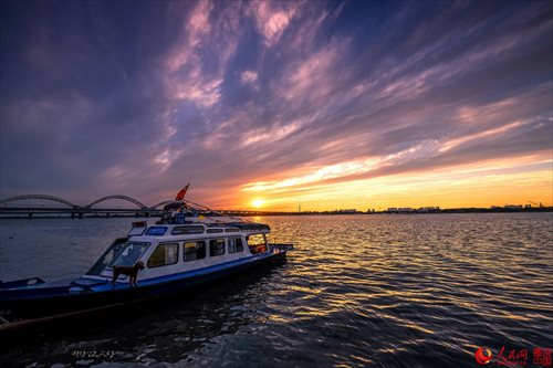 Photo shows a beautiful sunset along the banks of Songhuajiang River in northeastern China’s Heilongjiang province. (Photo/people.cn)