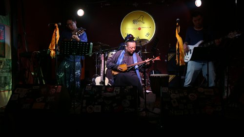 Manchu singer Akxan plays with his band in Chengdu. Photo: Courtesy of Serguwen