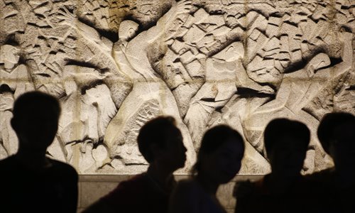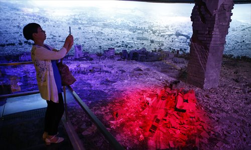 Visitors to the Tangshan Earthquake Memorial take in an exhibit on July 28. Photo: Li Hao/GT