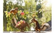 A pair of #squirrels appears to harvest apples through teamwork as one pushes a tiny wheel barrow full of apples, and the other picks apples. Swedish photographer Geert Weggen captured this great moment after spending six weeks building the apple cart “set” and waiting for curious squirrels to visit his garden. Photo: VCG