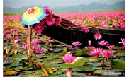 A child plucks red water lily from water in Barisal, Bangladesh on Oct. 7, 2018.