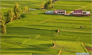 Photo taken on June 10, 2018 shows the scenery of Yijiawan Village of Fengle Township in Minle County of Zhangye, northwest China's Gansu Province. (Xinhua/Wang Jiang)