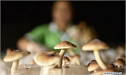 A worker collects mushrooms in an edible fungi production base in the Miao Autonomous County of Songtao, Tongren , southwest China's Guizhou Province, June 20, 2018.