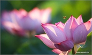 A bee flies near a lotus flower in Nanhu Park in Hengyang, central China's Hunan Province, June 26, 2018. (Xinhua/Cao Zhengping)