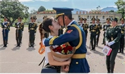Guns and roses: Honor guard from PLA Hong Kong Garrison helps soldier pop question to fiancée with surprise proposal. (Source: Wechat account“Southern Theater Command”)