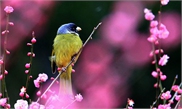 Colorful birds perch in blossoming plum trees at a park in Jinfo Mountain, Huangshan, East China's Anhui Province on Tuesday. (Photos: VCG)