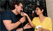 Indian Bollywood actor Aamir Khan celebrates his 53rd birthday with his wife in Mumbai, India on March 14, 2018.