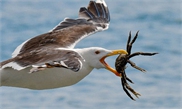 The bird carried the crab while skillfully avoiding its pincers before it landed on the beach to feast on its prey. (Photo: VCG)