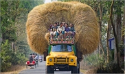A truck in Jaypurhat, Bangladesh is so overloaded with hay that it looks like a giant bushy hair, as workers sat on the roof, waiting to unload the hay at the destination. Drivers encourage their workers to load as much as possible, but overloading often draws safety concerns. (Photos: VCG)