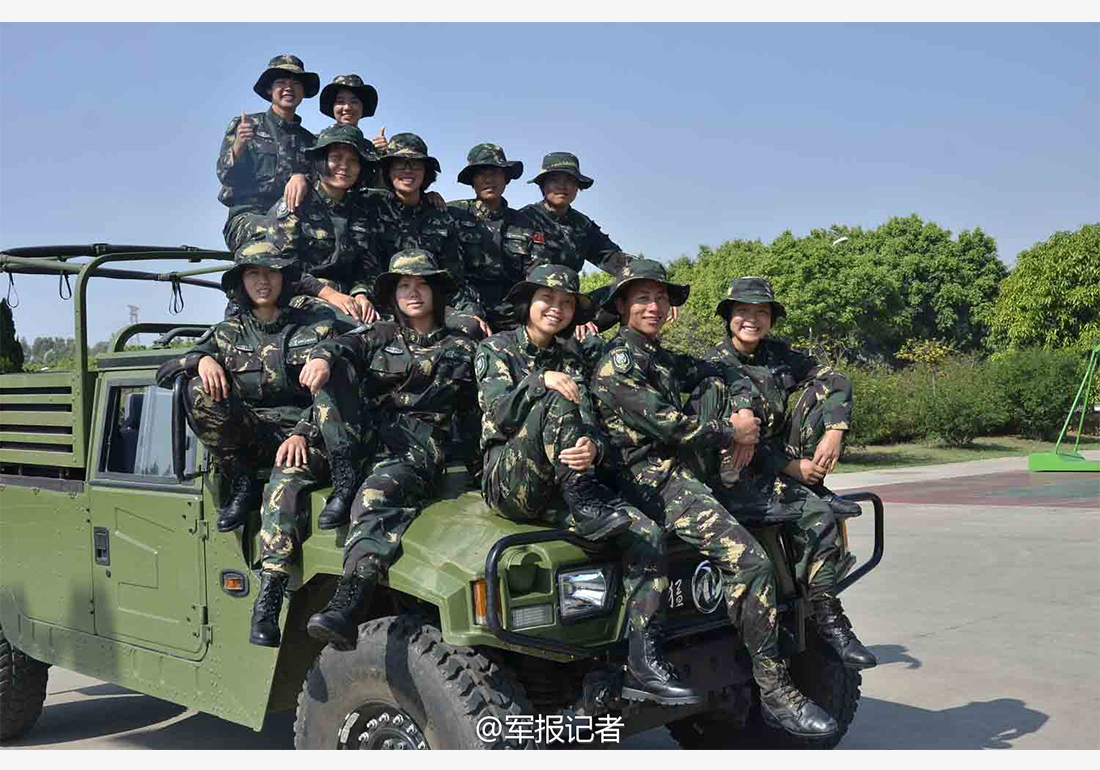 Female soldiers participate in physical training exercise. Photo: weibo account “Junbaojizhe” figcaption >