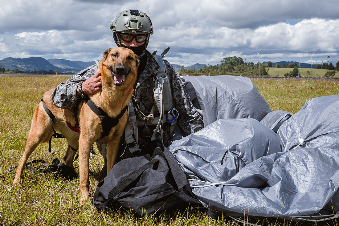 A dog jumps out of a plane at 4,300 meters to graduate as an elite member of a search and rescue unit. Siara is a one year old Belgian malinois, and since a few days after her birth she has been trained to cope with stressful situations in different environments both day and night. Once in the air, Siara behaves like your average dog in a car and can even be seen barking at her fellow jumpers as they pass by. Photo: CFP figcaption >