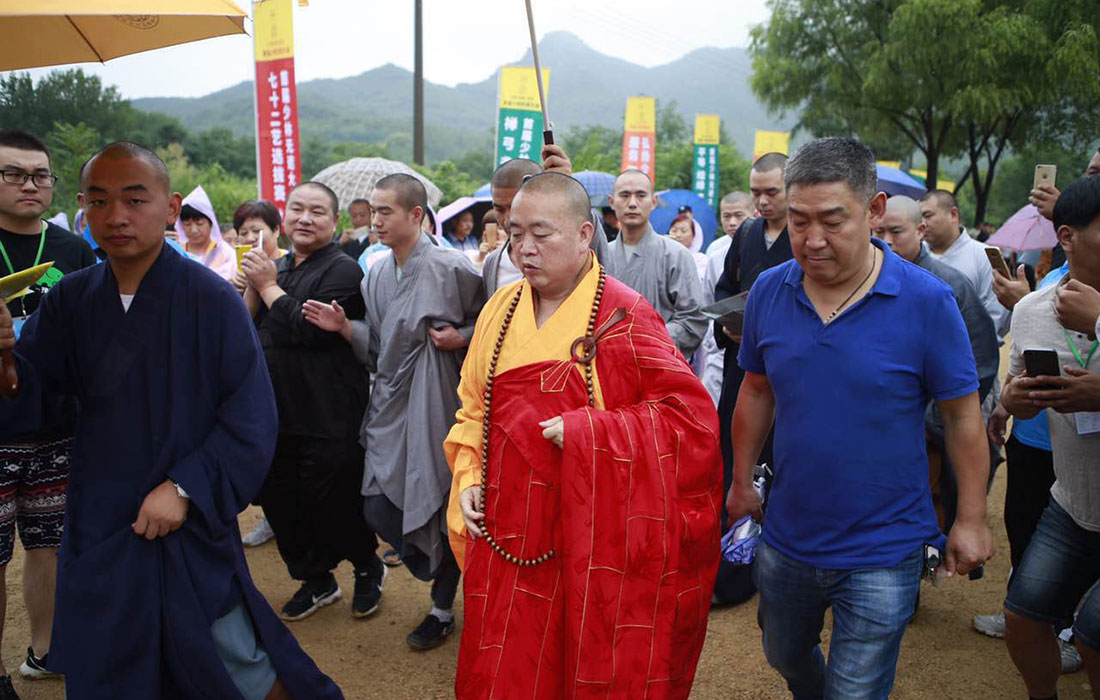 Shi Yongxin (center), abbot of the Shaolin Temple, attends the ceremony Photo: Li Hao/GT figcaption >