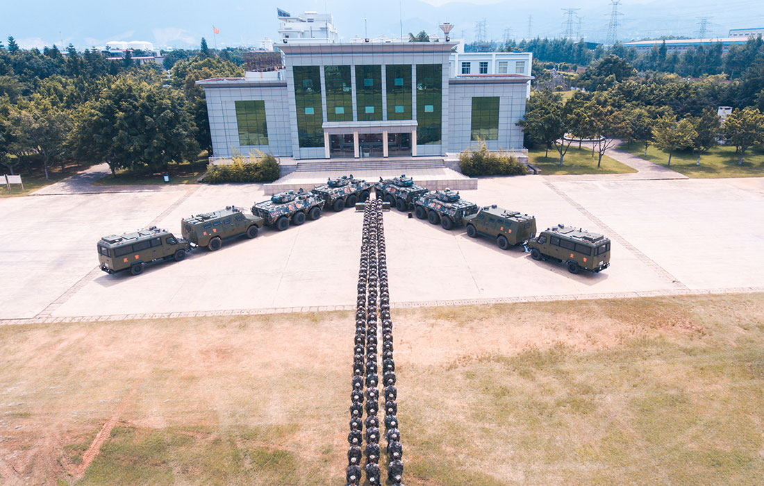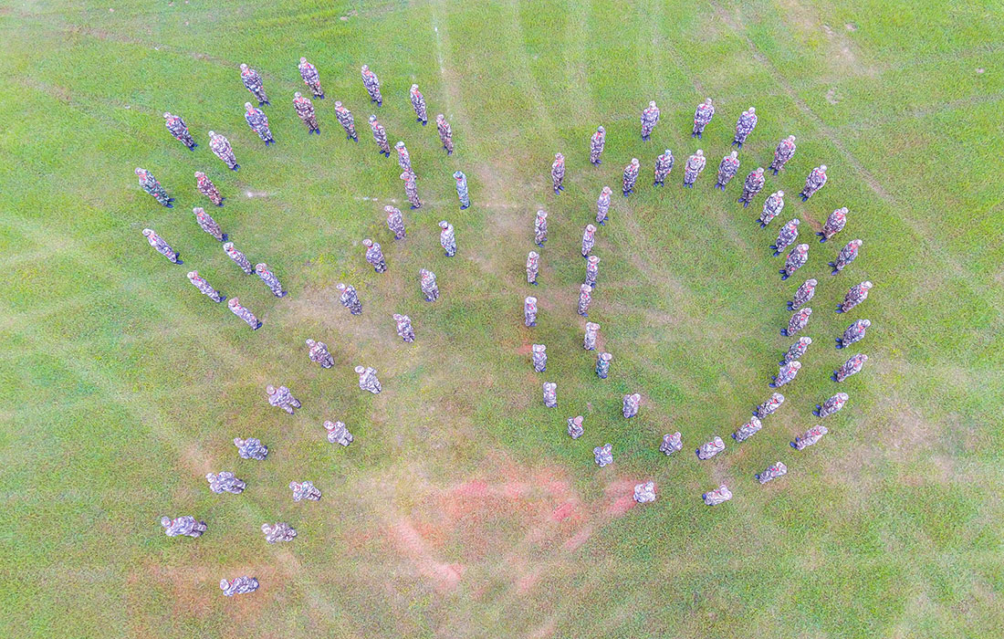 Officers and soldiers in Honghe, Southwest China’s Yunnan Province, pose for pictures in creative ways on July 29, 2017 to celebrate the 90th birthday of the People’s Liberation Army on August 1.